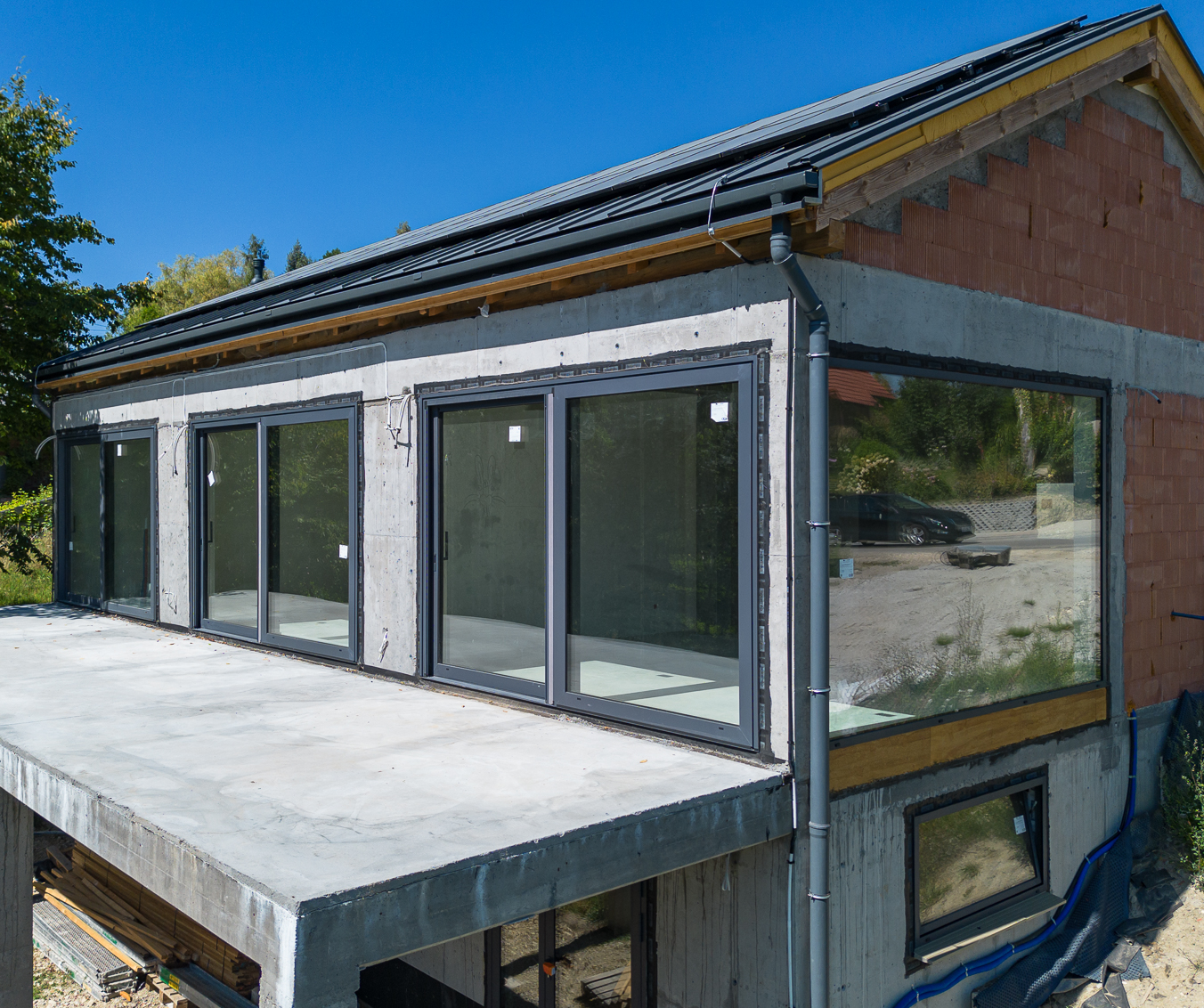 LEDO wykonało budynek jednorodzinny z imponującymi przeszkleniami otwierającymi widok na las. Dominują tutaj systemy HST, prowadzące na podniesiony taras, a w salonie zamontowano okno typu fix w jednej tafli o wadze ponad 250 kg, ze szkłem hartowanym dla zwiększonej wytrzymałości i bezpieczeństwa.
